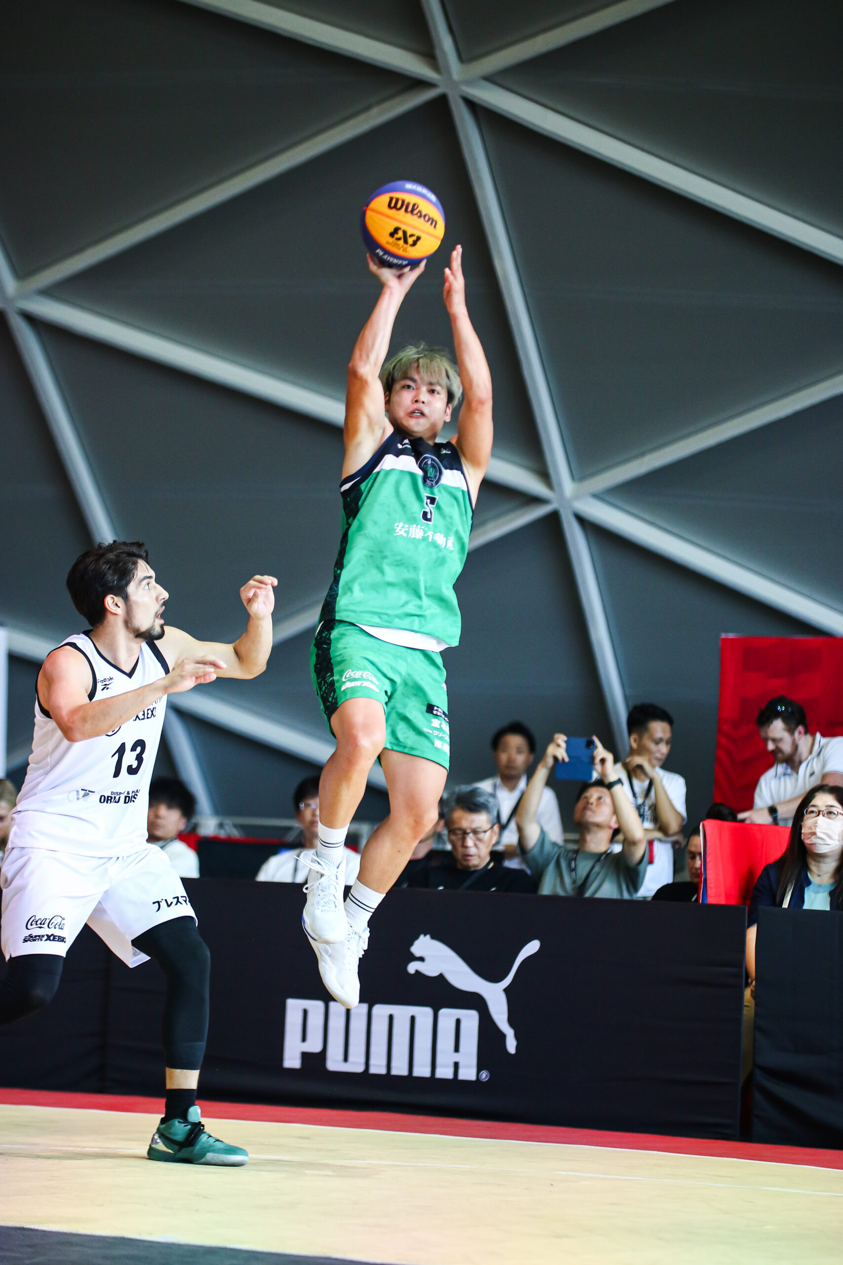 小松選手のフェイドアウェイ、2Pや西畝選手の2Pでじわじわと点差を詰め、残り4分で11-9に。しかし、相手のエースが勝負強さを見せ2本の2Pを沈め、15-15の同点でオーバータイム(OT)へ突入となります。